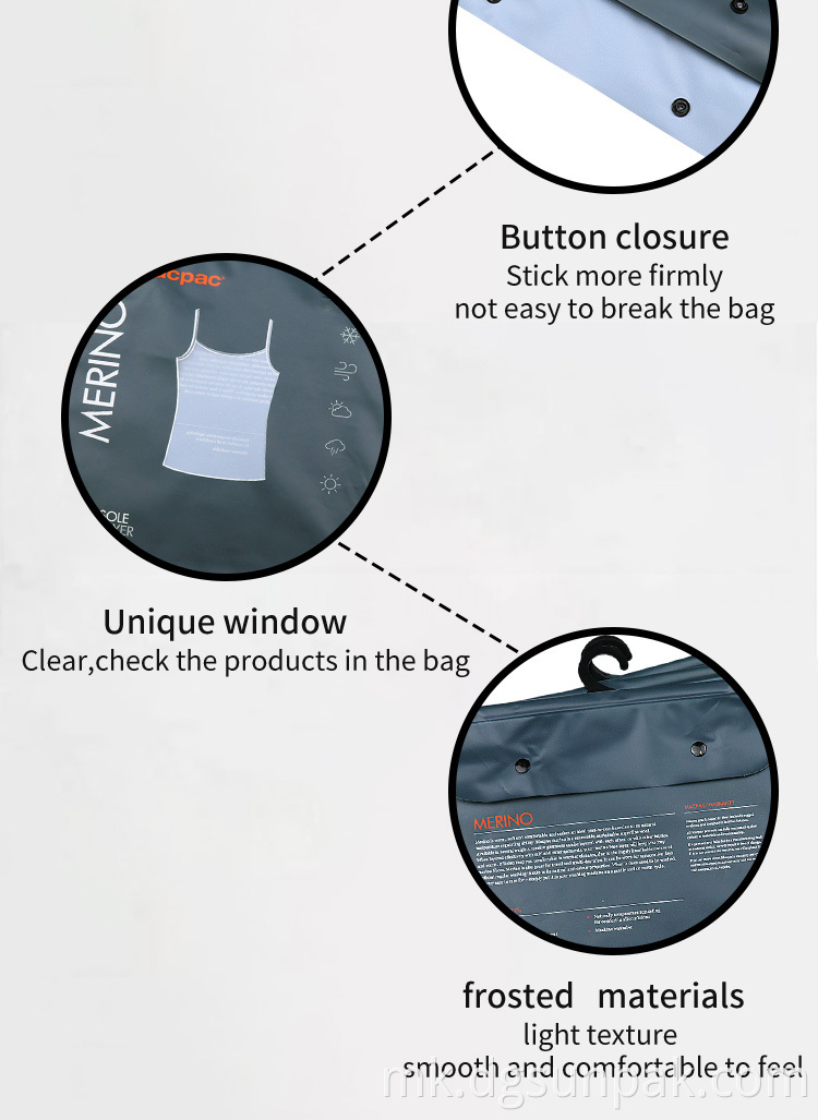 Can be hung,button closure,matte material