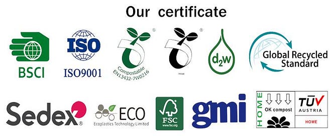 Елиминирајте го загадувањето од пластика на животната средина од изворот, рециклирањето и вистинската заштита на животната средина. Sunpak Packing аплицираше за голем број нови патенти и GRS, GMI, FSC, Sedex, BSCI, ISO9001, D2W, ECO-- меѓународни сертификати како што се рециклирање, управување со бои, заштита на животната средина, систем за квалитет, човекови права, општествена одговорност итн., кои им служат на клиентите ширум светот и длабока соработка со ADIDAS, CalvinZUE, ADIDAS, CalvinZUE, Тарте, KAPPA, LEE, DIESEL и други познати брендови.